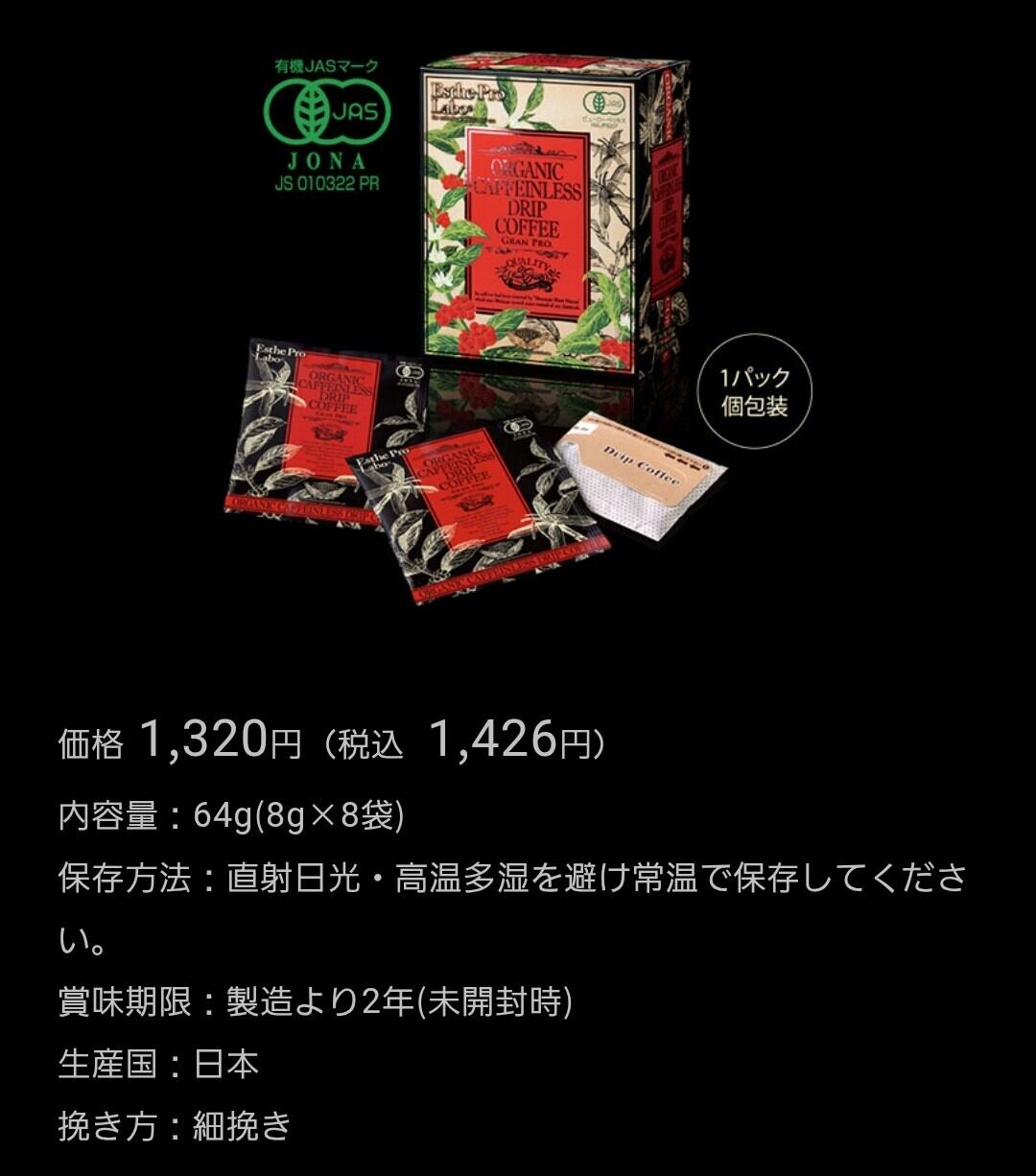 # オーガニック カフェインレス ドリップコーヒー グランプロ 商品説明文